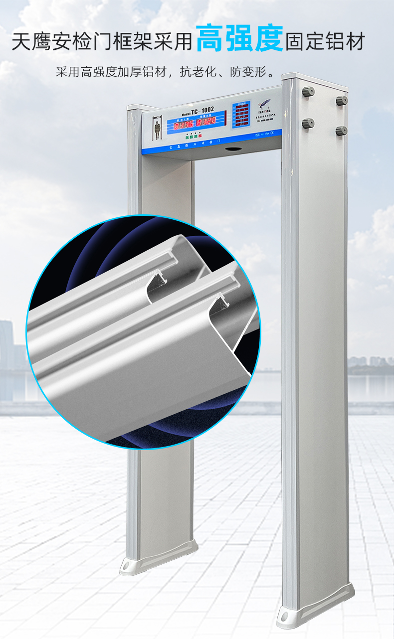 此款安檢門為室內型安檢門,只適用于室內安裝,材質不防雨。